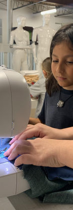 Participants spend most of their time working on their designs with guidance, while also learning sewing machine basics, using patterns, taking measurements, altering clothing, and upcycling materials.