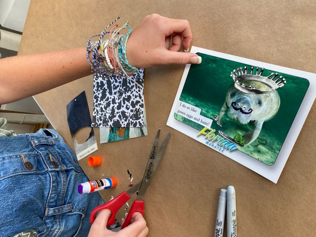 Along with the artwork from the artist, local viewers of the exhibition have the opportunity to take part. Throughout the exhibition participants added to a section by upcycling their own postcard and adding it to our wall, all addressed postcards were mailed at the end of the exhibition.